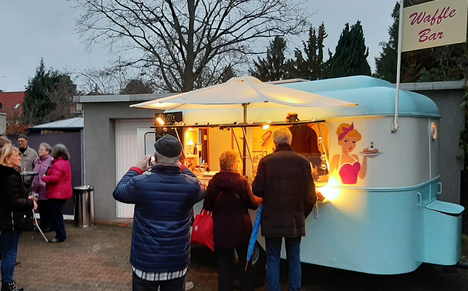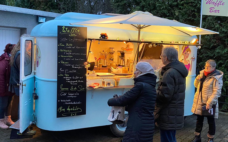 • 200 €/Stunde inkl. Personal, Waffeln und Kaffee.